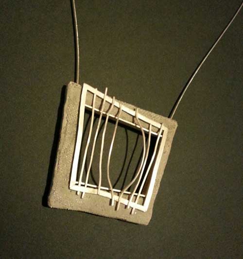 La peça que apareix a la fotografia es titula Homenatge als refugiats i ha estat elaborada en argent, ciment i acer. La peça vol convidar a reflexionar sobre el coratge de les persones que decideixen d'una situació difícil al seu pais d'orígen.